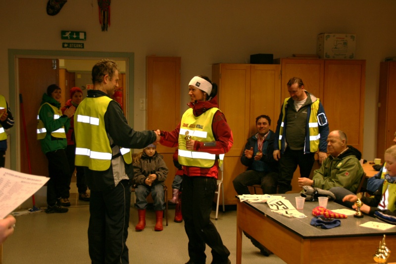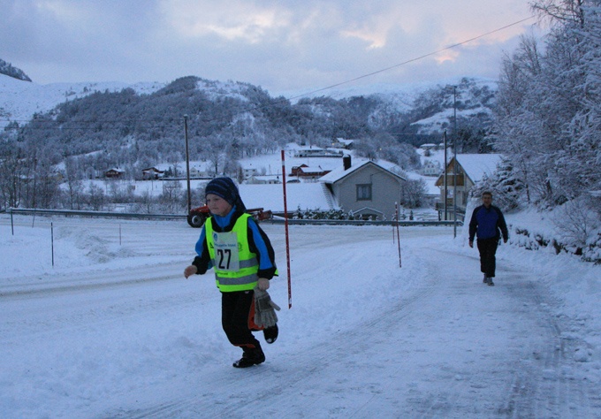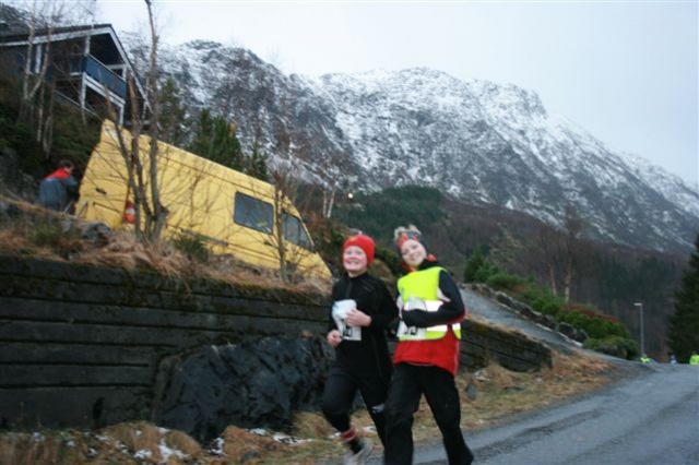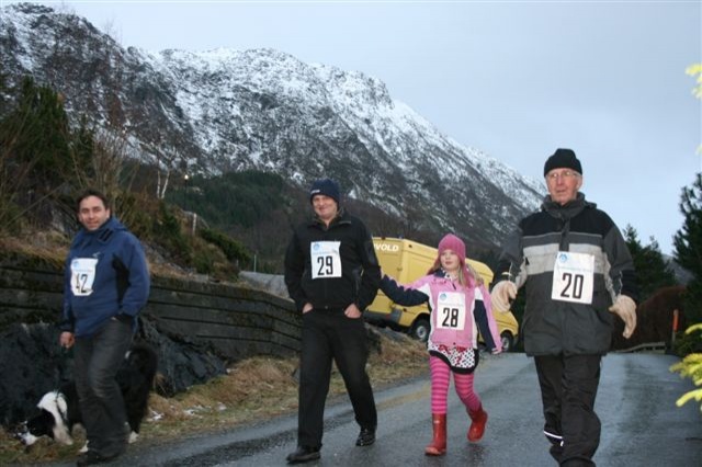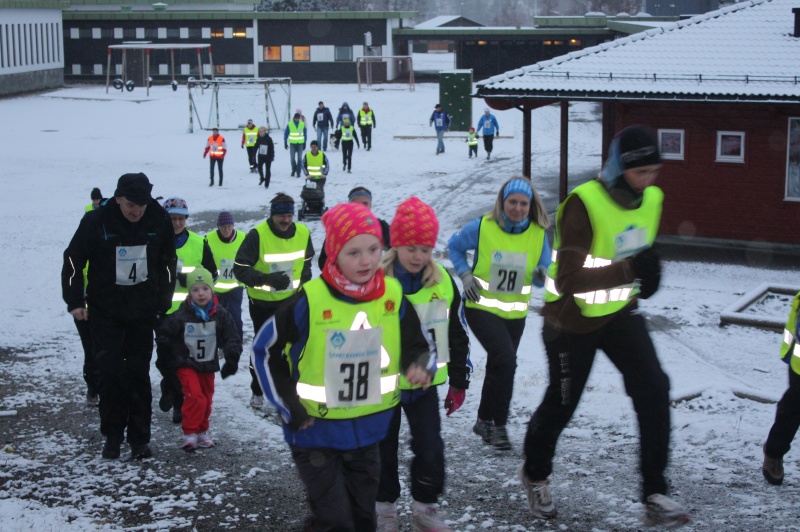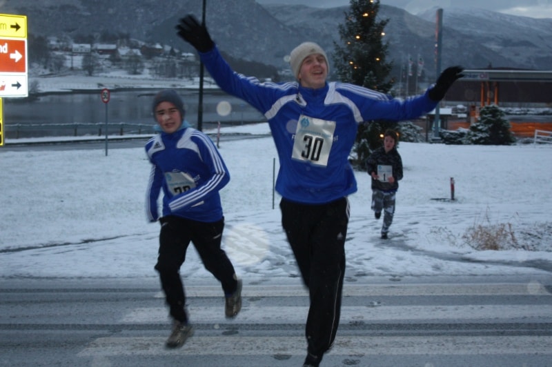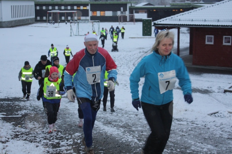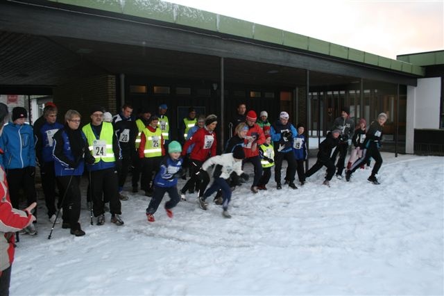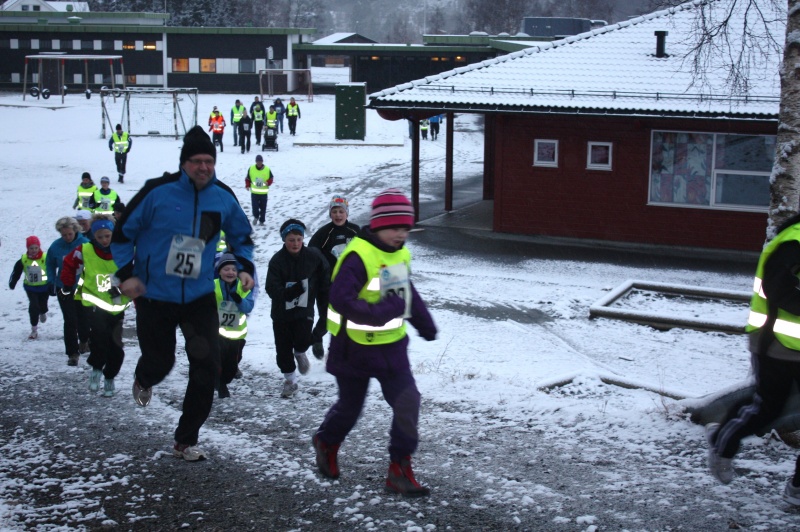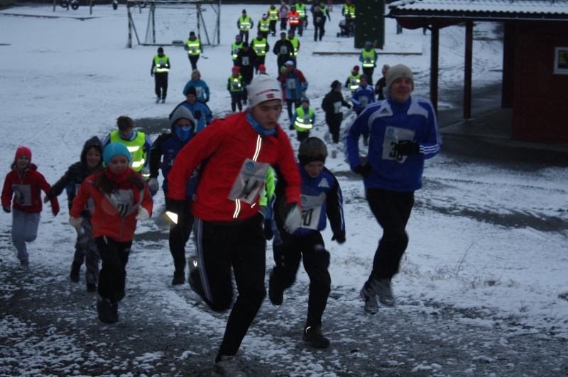 84 deltakarar på startstrek torsdag tredje juledag, er med det vi veit rekord. Laurdag stilte det seksten stykke, men tre av dei var med også torsdagen. Vi er dermed oppe i 97, og tel vi med dei tre som sprang utanom løpet torsdag, når vi 100 deltakarar. Dette er svært kjekt for oss som arrangerer, og med det vi høyrer synest også deltakarane det er triveleg med så stor oppslutning. Særleg positivt var det med gutelaget som tok løpet som ein formtest. Til neste løp er nok forma endå betre, dei kjenner løypa, har meir løpserfaring, og får kanskje betre ver, så her ligg det an til forbetringar. Også dei utanbygds deltakarane som tok turen i dårleg ver, må få honnør.